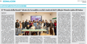 Articolo de IL PICCOLO di Trieste per la premiazione a 16 studenti del Collegio del Mondo Unito